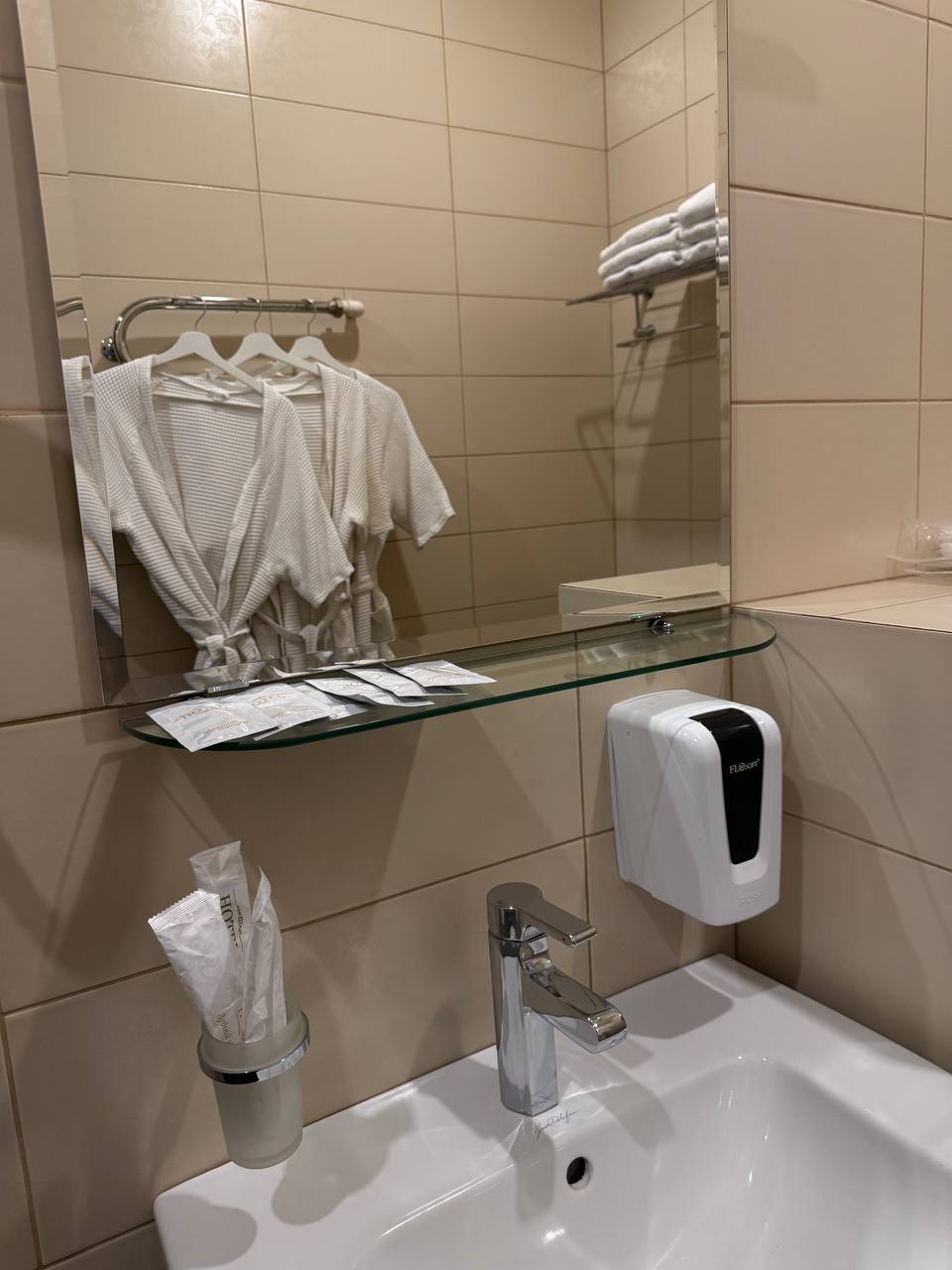 - Фен, расширенный ассортимент разовой парфюмерии, халаты, тапочки, полотенца.