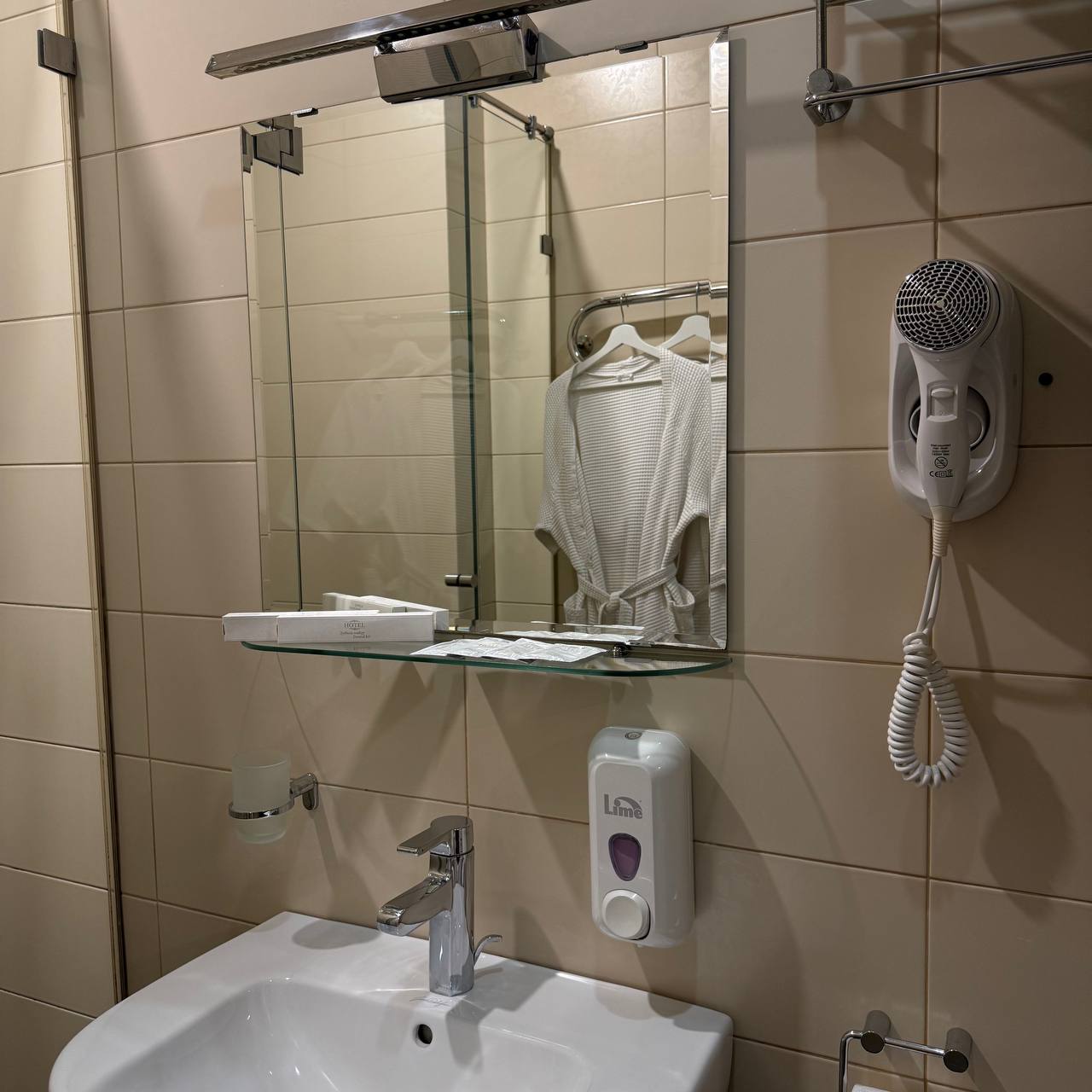 - Фен, душевые принадлежности, халаты, тапочки, полотенца;