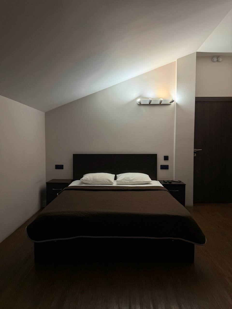 - Двухспальная кровать с ортопедическим матрасцем, односпальная кровать с ортопедическим матрацем, тумбы, шкаф, стол;